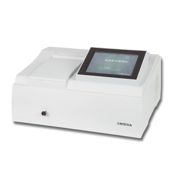 ,酶催化神經(jīng)傳導(dǎo)代謝產(chǎn)物(乙酰膽堿)水解,其水解產(chǎn)物與顯色劑反應(yīng),產(chǎn)生黃色物質(zhì),用分光光度計(jì)測定412nm下吸光度隨時(shí)間的變化值,計(jì)算出抑制率,通過抑制率可以判斷出樣品中是否含有有機(jī)磷或氨基甲酸酯類農(nóng)藥的殘留。可以實(shí)現(xiàn)有機(jī)磷及氨基甲酸酯類農(nóng)藥殘留量的現(xiàn)場快速檢測。